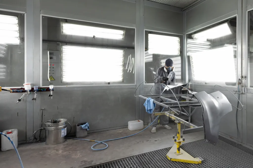 Our blast booth uses metal media to prepare surfaces for coating, which improves adhesion and overall finish quality